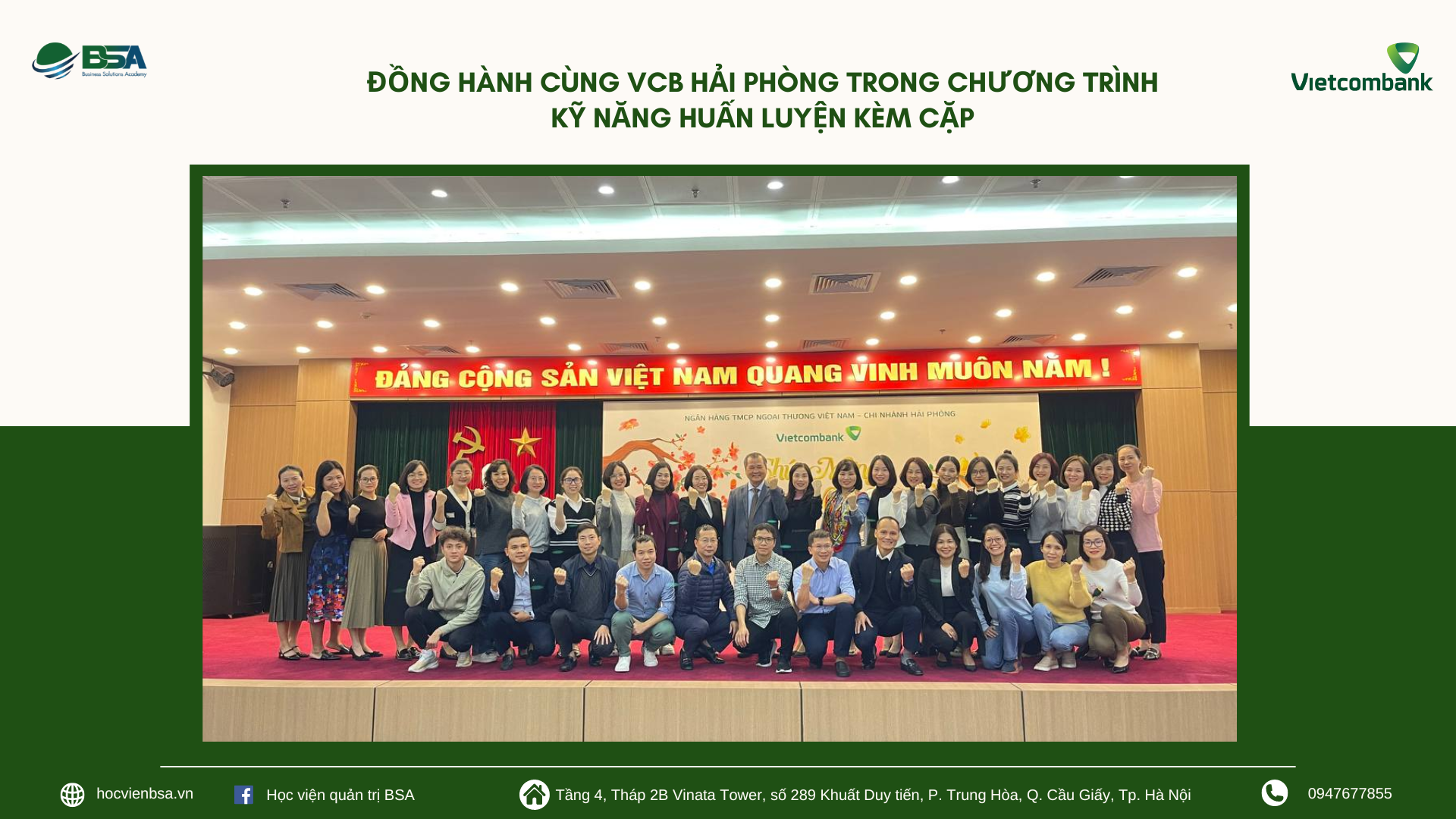 Khóa học: Kỹ năng huấn luyện kèm cặp Đối tác: VCB Hải Phòng Chương trình “Kỹ năng huấn luyện và